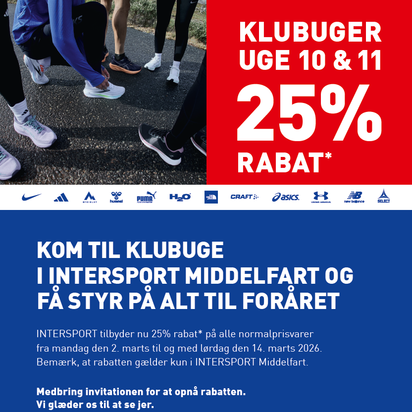 Som medlem i MG & BK kan du i uge 10 og 11 opnå 25% i Intersport i Middelfart.
