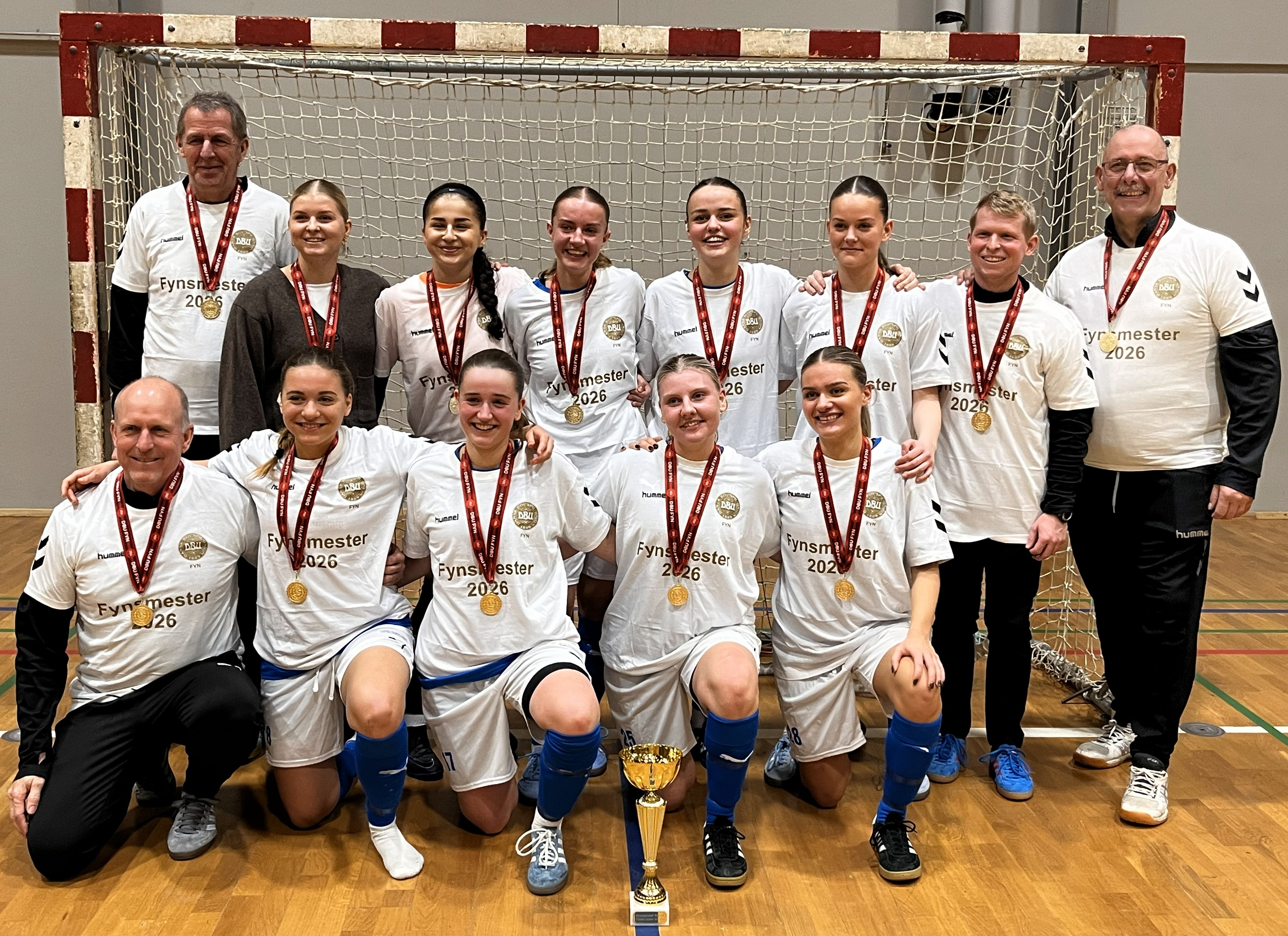 Kvinderne i MG & BK fik søndag overrakt pokal, guldmedaljer og DBU's mesterskabstrøjer som fynsmestre i futsal, som er indendørs fodbold uden bander.
